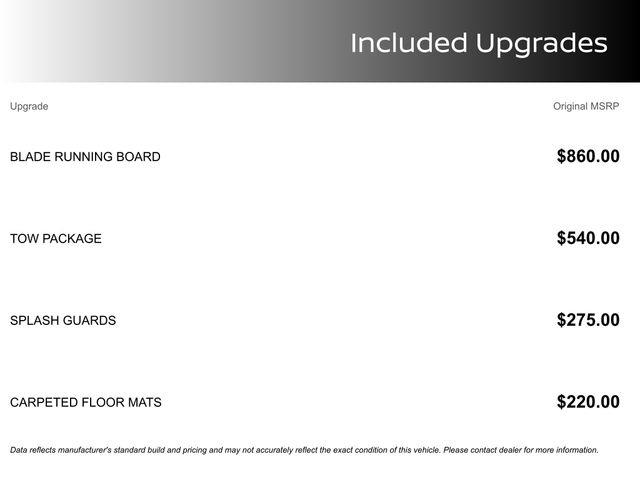 4WD, 17" Alloy Wheels, 3.692 Axle Ratio, 4-Wheel Disc Brakes, 6 Speakers, ABS brakes, Air Conditioning, Alloy wheels, AM/FM radio: SiriusXM, Anti-whiplash front head restraints, Auto High-beam Headlights, Blade Running Board, Blind Spot Warning, Brake assist, Bumpers: body-color, Carpeted Floor Mats, Delay-off headlights, Driver door bin, Driver vanity mirror, Dual front impact airbags, Dual front side impact airbags, Electronic Stability Control, Emergency communication system, Front anti-roll bar, Front Bucket Seats, Front Center Armrest, Front reading lights, Front wheel independent suspension, Fully automatic headlights, Illuminated entry, Knee airbag, Low tire pressure warning, Occupant sensing airbag, Overhead airbag, Overhead console, Panic alarm, Passenger door bin, Passenger vanity mirror, Power door mirrors, Power driver seat, Power steering, Power windows, Premium Cloth Seat Trim, Radio data system, Radio: SXM/AM/FM/AUX/USB Audio System, Rear anti-roll bar, Rear seat center armrest, Rear side impact airbag, Rear step bumper, Remote keyless entry, Security system, Speed control, Speed-sensing steering, Splash Guards, Split folding rear seat, Steering wheel mounted audio controls, Tachometer, Telescoping steering wheel, Tilt steering wheel, Tow Package, Tow/Haul Mode Switch, Traction control, Trip computer, Variably intermittent wipers, Voltmeter, Wireless Apple CarPlay/Wireless Android Auto, 4WD.