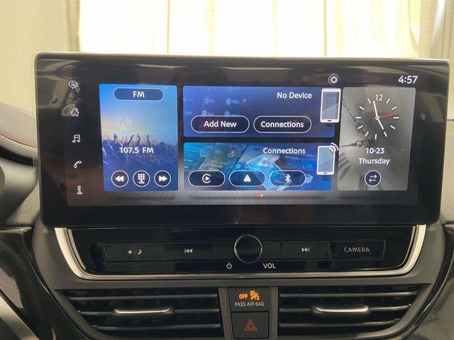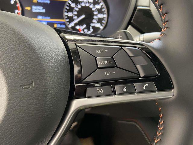 CVT with Xtronic, 4-Wheel Disc Brakes, 6 Speakers, ABS brakes, Air Conditioning, Alloy wheels, AM/FM radio: SiriusXM, Auto High-beam Headlights, Blind Spot Warning, Brake assist, Bumpers: body-color, Delay-off headlights, Driver door bin, Driver vanity mirror, Dual front impact airbags, Dual front side impact airbags, Electronic Stability Control, Four wheel independent suspension, Front anti-roll bar, Front Bucket Seats, Front Center Armrest, Front reading lights, Fully automatic headlights, Illuminated entry, Knee airbag, Leather Shift Knob, Low tire pressure warning, NissanConnect featuring Apple CarPlay and Android Auto, Occupant sensing airbag, Outside temperature display, Overhead airbag, Overhead console, Panic alarm, Passenger door bin, Passenger vanity mirror, Power door mirrors, Power driver seat, Power steering, Power windows, Radio data system, Radio: AM/FM Audio System, Rear anti-roll bar, Rear Parking Sensors, Rear reading lights, Rear seat center armrest, Rear side impact airbag, Rear window defroster, Remote keyless entry, Security system, Speed control, Speed-sensing steering, Speed-Sensitive Wipers, Split folding rear seat, Sport Seat Trim, Steering wheel mounted audio controls, Tachometer, Telescoping steering wheel, Tilt steering wheel, Traction control, Trip computer, Unique Sport Seats, Variably intermittent wipers, Wheels: 19" Sport Machined Alloy, CVT with Xtronic.