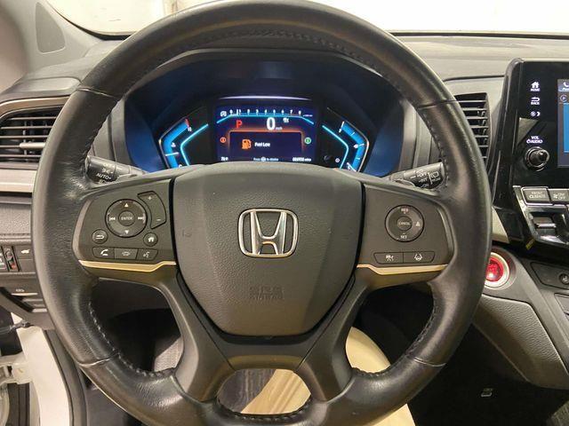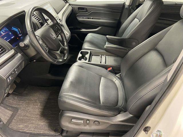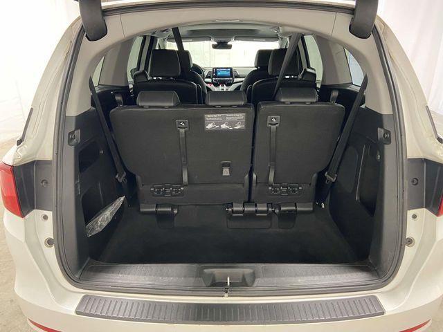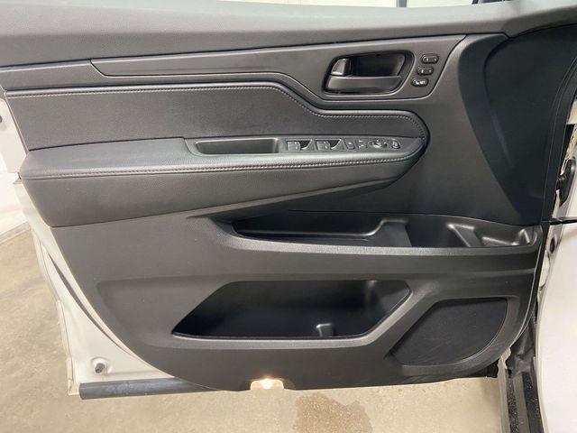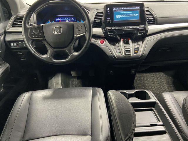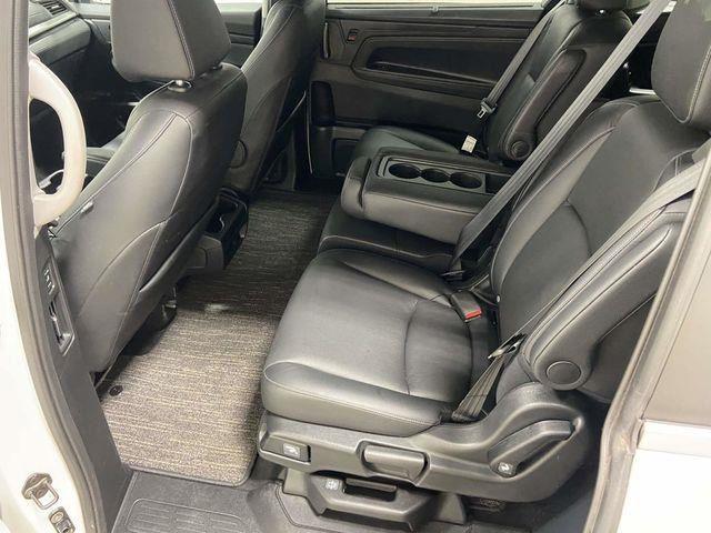 Odyssey EX-L, FWD, Platinum White Pearl, Black Leather, 18" Machine-Finished Alloy Wheels, 3.61 Axle Ratio, 3rd row seats: split-bench, 4-Wheel Disc Brakes, 7 Speakers, A/V remote: CabinControl, ABS brakes, Adaptive Cruise Control: Adaptive Cruise Control (ACC) with Low-Speed Follow, Air Conditioning, Alloy wheels, AM/FM radio: SiriusXM, Anti-whiplash front head restraints, Apple CarPlay/Android Auto, Auto High-beam Headlights, Auto-dimming Rear-View mirror, Automatic temperature control, Blind Spot Information (BSI) System warning, Brake assist, Bumpers: body-color, Delay-off headlights, Driver door bin, Driver vanity mirror, Driver's Seat Mounted Armrest, Dual front impact airbags, Dual front side impact airbags, Electronic Stability Control, Exterior Parking Camera Rear, Four wheel independent suspension, Front anti-roll bar, Front Bucket Seats, Front dual zone A/C, Front fog lights, Front reading lights, Fully automatic headlights, Garage door transmitter: HomeLink, Heated door mirrors, Heated Front Bucket Seats, Heated front seats, Illuminated entry, Knee airbag, Lane departure: Lane Keeping Assist System (LKAS) active, Leather Seat Trim, Leather steering wheel, Low tire pressure warning, Memory seat, Occupant sensing airbag, Outside temperature display, Overhead airbag, Overhead console, Panic alarm, Passenger door bin, Passenger seat mounted armrest, Passenger vanity mirror, Power door mirrors, Power driver seat, Power Liftgate, Power moonroof, Power passenger seat, Power steering, Power windows, Radio data system, Radio: 160-Watt AM/FM/HD/SiriusXM Audio System, Rear air conditioning, Rear anti-roll bar, Rear reading lights, Rear seat center armrest, Rear window defroster, Rear window wiper, Reclining 3rd row seat, Remote keyless entry, Security system, Speed control, Speed-sensing steering, Speed-Sensitive Wipers, Split folding rear seat, Spoiler, Steering wheel mounted audio controls, Tachometer, Telescoping steering wheel, Tilt steering wheel, Traction control, Trip computer, Turn signal indicator mirrors, Variably intermittent wipers, Odyssey EX-L, FWD, Platinum White Pearl, Black Leather. Platinum White Pearl 2023 Honda Odyssey EX-L FWD 10-Speed Automatic 3.5L V6 SOHC i-VTEC 24V