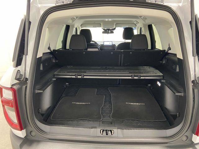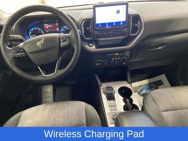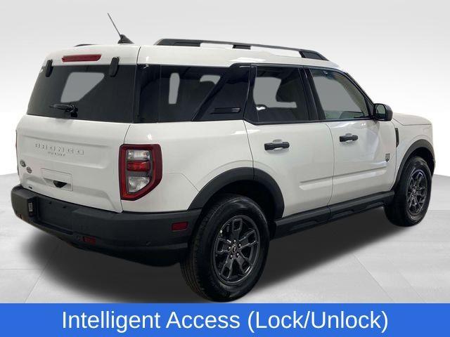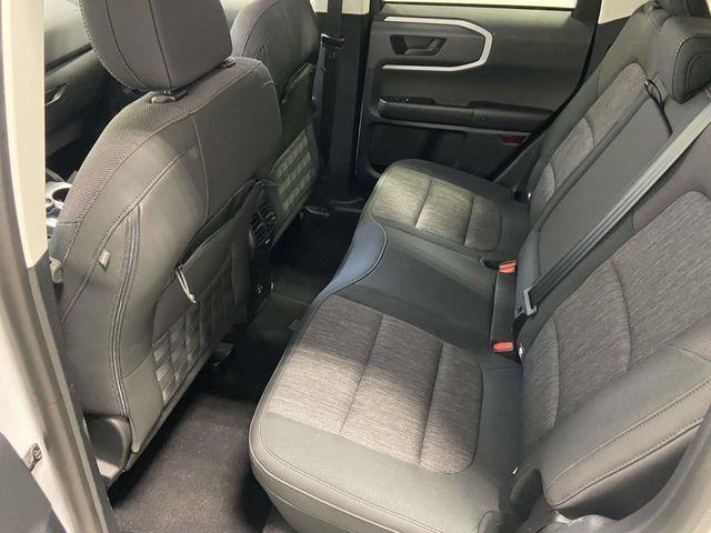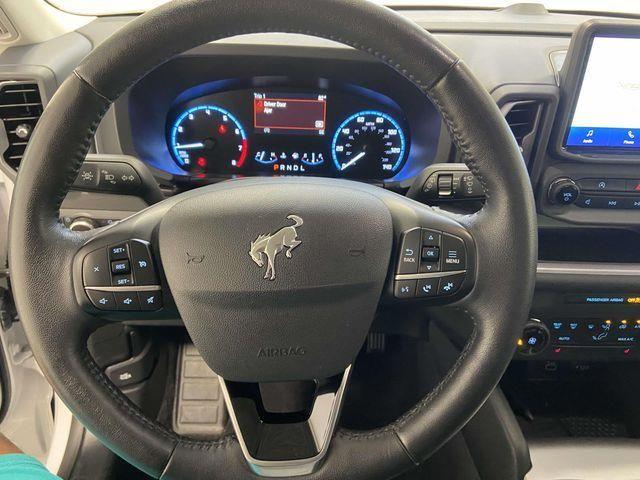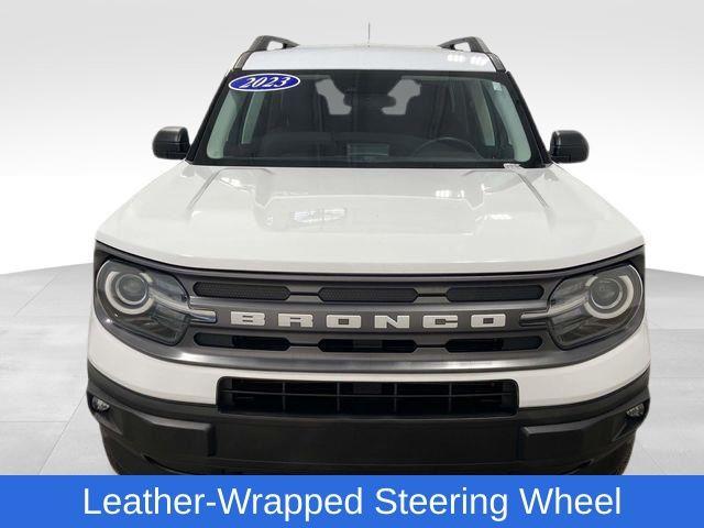 Bronco Sport Big Bend, 1.5L EcoBoost, 4WD, Oxford White, Ebony w/Cloth Front Bucket Seats, Convenience Package, Equipment Group 200A, Front Driver & Passenger Seatback Zipper Pockets, Heated Front Bucket Seats, Intelligent Access (Lock/Unlock), Leather-Wrapped Steering Wheel, LED Fog Lamps, Rear Parking Sensors, Universal Garage Door Opener (UGDO), Wireless Charging Pad, 3.80 Axle Ratio, 4-Wheel Disc Brakes, 4G LTE Wi-Fi Hotspot Credit, 6 Speakers, ABS brakes, Air Conditioning, Alloy wheels, AM/FM radio: SiriusXM, AM/FM Stereo, Auto High-beam Headlights, Automatic temperature control, Brake assist, Cargo Management System, Compass, Delay-off headlights, Driver door bin, Driver vanity mirror, Dual front impact airbags, Dual front side impact airbags, Electronic Stability Control, Emergency communication system: SYNC 3 911 Assist, Four wheel independent suspension, Front anti-roll bar, Front Bucket Seats, Front Center Armrest, Front reading lights, Fully automatic headlights, Heated door mirrors, Illuminated entry, Knee airbag, Low tire pressure warning, Occupant sensing airbag, Outside temperature display, Overhead airbag, Overhead console, Panic alarm, Passenger door bin, Passenger vanity mirror, Power door mirrors, Power steering, Power windows, Radio data system, Rear anti-roll bar, Rear reading lights, Rear seat center armrest, Rear window defroster, Rear window wiper, Remote keyless entry, Security system, SiriusXM, Speed control, Speed-sensing steering, Speed-Sensitive Wipers, Split folding rear seat, Steering wheel mounted audio controls, SYNC 3 Communications & Entertainment System, SYNC 3/Apple CarPlay/Android Auto, Tachometer, Telescoping steering wheel, Tilt steering wheel, Traction control, Trip computer, Unique Cloth Front Bucket Seats, Variably intermittent wipers, Wheels: 17" Carbonized Gray-Painted Aluminum, Bronco Sport Big Bend, 1.5L EcoBoost, 4WD, Oxford White, Ebony w/Cloth Front Bucket Seats, Convenience Package, Equipment Group 200A, Front Driver & Passenger Seatback Zipper Pockets, Heated Front Bucket Seats, Intelligent Access (Lock/Unlock), Leather-Wrapped Steering Wheel, LED Fog Lamps, Rear Parking Sensors, Universal Garage Door Opener (UGDO), Wireless Charging Pad. Oxford White 2023 Ford Bronco Sport Big Bend 4WD 8-Speed Automatic 1.5L EcoBoost