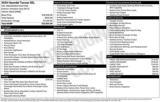Hampton Gray 2026 Hyundai Tucson SEL FWD 8-Speed Automatic with SHIFTRONIC 2.5L I4 DGI DOHC 16V LEV3-SULEV30 187hp