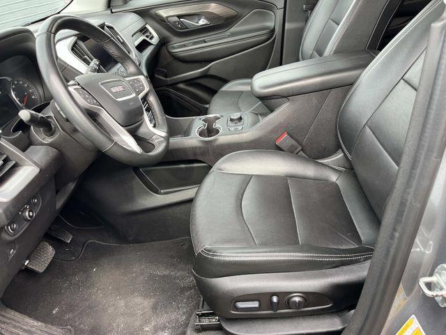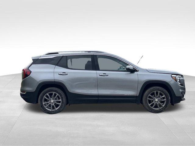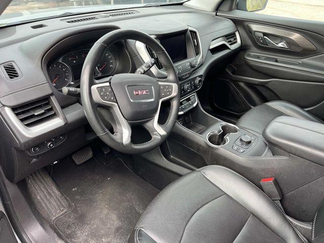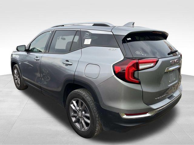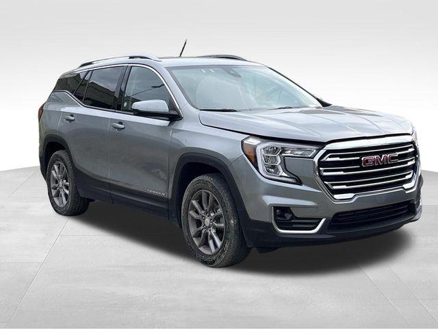Terrain SLT, 4D Sport Utility, 1.5L DOHC, 9-Speed Automatic, AWD, Sterling Metallic, Black Leather, Preferred Equipment Group 4SA, 2 USB Data Ports, 2 USB Data Ports w/SD Card Reader, 3.47 Final Drive Axle Ratio, 4-Wheel Disc Brakes, 6 Speakers, 6-Speaker Audio System Feature, 6-Way Power Front Passenger Seat, 8-Way Power Driver Seat Adjuster, ABS brakes, Air Conditioning, Alloy wheels, AM/FM radio: SiriusXM, Auto High-beam Headlights, Auto-dimming Rear-View mirror, Automatic temperature control, Bluetooth® For Phone, Brake assist, Bumpers: body-color, Compass, Delay-off headlights, Driver & Front Passenger Heated Seats, Driver door bin, Driver vanity mirror, Dual front impact airbags, Dual front side impact airbags, Electronic Stability Control, Emergency communication system: OnStar and GMC connected services capable, Four wheel independent suspension, Front anti-roll bar, Front Bucket Seats, Front Center Armrest, Front dual zone A/C, Front fog lights, Front Passenger 2-Way Power Lumbar, Front reading lights, Fully automatic headlights, Garage door transmitter, Heated door mirrors, Heated front seats, Heated steering wheel, Illuminated entry, Low tire pressure warning, Memory seat, Occupant sensing airbag, Outside temperature display, Overhead airbag, Overhead console, Panic alarm, Passenger door bin, Passenger vanity mirror, Perforated Leather-Appointed Seat Trim, Power door mirrors, Power Driver Lumbar Control, Power driver seat, Power Liftgate, Power passenger seat, Power steering, Power windows, Radio data system, Radio: GMC Infotainment Audio System w/8" Display, Rear anti-roll bar, Rear seat center armrest, Rear window defroster, Rear window wiper, Remote keyless entry, Roof rack: rails only, Security system, SiriusXM, Speed control, Speed-sensing steering, Split folding rear seat, Spoiler, Steering wheel mounted audio controls, Tachometer, Telescoping steering wheel, Tilt steering wheel, Traction control, Trip computer, Turn signal indicator mirrors, Variably intermittent wipers, Wheels: 18" x 7" Silver Painted Aluminum, Wireless Apple CarPlay/Wireless Android Auto, Terrain SLT, 4D Sport Utility, 1.5L DOHC, 9-Speed Automatic, AWD, Sterling Metallic, Black Leather, Preferred Equipment Group 4SA. Sterling Metallic 2024 GMC Terrain SLT AWD 9-Speed Automatic 1.5L DOHC