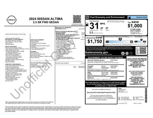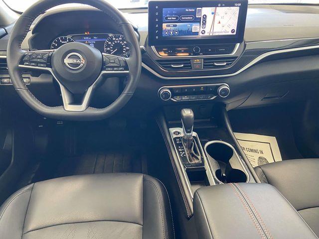 Nissan Certified Certified, CVT with Xtronic, 2-Way Driver Power Lumbar Support, 4-Way Power Passenger Seat, 4-Wheel Disc Brakes, 6 Speakers, ABS brakes, Air Conditioning, Alloy wheels, AM/FM radio: SiriusXM, Auto High-beam Headlights, B-Pillar Sensor Delete, Blind Spot Warning, Body-Colored Splash Guards, Brake assist, Bumpers: body-color, Delay-off headlights, Driver door bin, Driver vanity mirror, Dual front impact airbags, Dual front side impact airbags, Electronic Stability Control, Four wheel independent suspension, Front anti-roll bar, Front Bucket Seats, Front Center Armrest, Front reading lights, Fully automatic headlights, Heated Front Seats, Illuminated entry, Knee airbag, Leather Shift Knob, Leather-Appointed Seat Trim, Low tire pressure warning, NissanConnect, NissanConnect featuring Apple CarPlay, Occupant sensing airbag, Outside temperature display, Overhead airbag, Overhead console, Panic alarm, Passenger door bin, Passenger vanity mirror, Power door mirrors, Power driver seat, Power steering, Power windows, Premium Sport Interior Finishers, Radio data system, Radio: AM/FM Audio System, Rear anti-roll bar, Rear Parking Sensors, Rear reading lights, Rear seat center armrest, Rear side impact airbag, Rear window defroster, Remote keyless entry, Security system, Single Panel Moonroof, Speed control, Speed-sensing steering, Speed-Sensitive Wipers, Split folding rear seat, Sport Seat Trim, SR Floor Mats/Trunk Mat/Hideaway Nets, SR Premium Package, Steering wheel mounted audio controls, Tachometer, Telescoping steering wheel, Tilt steering wheel, Traction control, Trip computer, Trunk Organizer Tray, Unique Sport Seats, Variably intermittent wipers, Wheels: 19" Sport Alloy, CVT with Xtronic. Pearl White Tricoat 2024 Nissan Altima 2.5 SR FWD CVT with Xtronic 2.5L 4-Cylinder DOHC 16V
