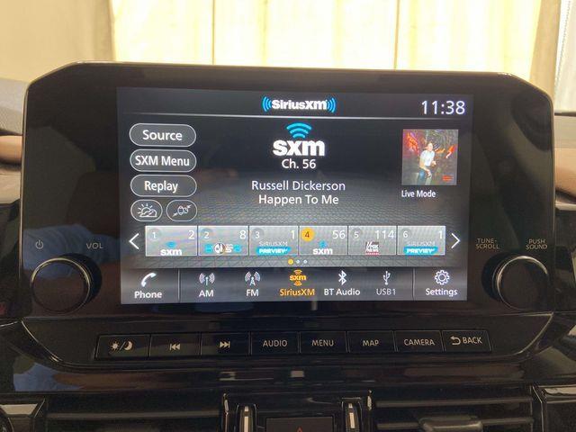 13 Speakers, 3rd row seats: bench, 4-Wheel Disc Brakes, ABS brakes, Air Conditioning, Alloy wheels, AM/FM radio: SiriusXM, Auto High-beam Headlights, Auto tilt-away steering wheel, Auto-dimming Rear-View mirror, Automatic temperature control, Bodyside moldings, Bose Premium Audio System, Brake assist, Bumpers: body-color, Climate Controlled Front Bucket Seats, Delay-off headlights, Driver door bin, Driver vanity mirror, Dual front impact airbags, Dual front side impact airbags, Electronic Stability Control, Emergency communication system, Exterior Parking Camera Rear, Four wheel independent suspension, Front anti-roll bar, Front Bucket Seats, Front Center Armrest, Front dual zone A/C, Front reading lights, Fully automatic headlights, Garage door transmitter: HomeLink, Heads-Up Display, Heated door mirrors, Heated front seats, Heated rear seats, Heated steering wheel, Illuminated entry, Knee airbag, Leather steering wheel, Low tire pressure warning, Memory seat, Navigation system: NissanConnect with Navigation and Services, NissanConnect featuring Apple CarPlay and Android Auto, NissanConnect w/Navigation & Services, Occupant sensing airbag, Outside temperature display, Overhead airbag, Overhead console, Panic alarm, Passenger door bin, Passenger vanity mirror, Power door mirrors, Power driver seat, Power Liftgate, Power moonroof, Power passenger seat, Power steering, Power windows, Radio data system, Radio: AM/FM Audio System, Rain sensing wipers, Rear air conditioning, Rear anti-roll bar, Rear reading lights, Rear seat center armrest, Rear side impact airbag, Rear window defroster, Rear window wiper, Reclining 3rd row seat, Remote keyless entry, Security system, Semi-Aniline Leather-Appointed Seating Surfaces, Speed control, Speed-sensing steering, Speed-Sensitive Wipers, Split folding rear seat, Spoiler, Steering wheel memory, Steering wheel mounted audio controls, Tachometer, Telescoping steering wheel, Tilt steering wheel, Traction control, Trip computer, Turn signal indicator mirrors, Variably intermittent wipers, Ventilated front seats, Wheels: 20" x 8J Machined Alloy.