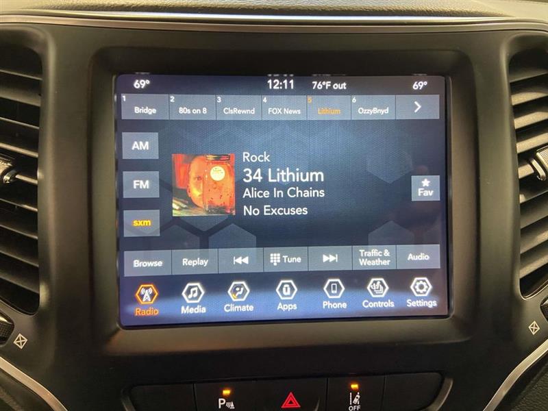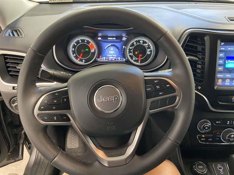 17" x 7.0" Painted Aluminum Wheels, 3.251 Final Drive Ratio, 4-Wheel Disc Brakes, 6 Speakers, ABS brakes, Air Conditioning, Alloy wheels, AM/FM radio: SiriusXM, Anti-whiplash front head restraints, Apple CarPlay/Android Auto, Auto-dimming Rear-View mirror, Automatic temperature control, Brake assist, Bumpers: body-color, Compass, Delay-off headlights, Driver door bin, Driver vanity mirror, Dual Bright Exhaust Tips, Dual front impact airbags, Dual front side impact airbags, Electronic Stability Control, Engine Oil Cooler, Four wheel independent suspension, Front anti-roll bar, Front Bucket Seats, Front Center Armrest, Front dual zone A/C, Front fog lights, Front reading lights, Fully automatic headlights, Garage door transmitter, Heated door mirrors, Heated front seats, Heated steering wheel, Illuminated entry, Knee airbag, Leather Shift Knob, Liquid Titanium Accents, Liquid Titanium Door Trim Appliques, Low tire pressure warning, Normal Duty Suspension, Occupant sensing airbag, Outside temperature display, Overhead airbag, Overhead console, Panic alarm, ParkView Rear Back-Up Camera, Passenger door bin, Passenger vanity mirror, Power door mirrors, Power driver seat, Power Liftgate, Power passenger seat, Power steering, Power windows, Premium Leather Trimmed Bucket Seats, Quick Order Package 26H, Radio data system, Radio: Uconnect 4 w/8.4" Display, Rain sensing wipers, Rear anti-roll bar, Rear reading lights, Rear seat center armrest, Rear side impact airbag, Rear window defroster, Rear window wiper, Remote keyless entry, Roof rack: rails only, Security system, Speed control, Speed-sensing steering, Split folding rear seat, Spoiler, Steering wheel mounted audio controls, Stop-Start Multiple VSM System, Tachometer, Telescoping steering wheel, Tilt steering wheel, Traction control, Trip computer, Turn signal indicator mirrors, Variably intermittent wipers, Voltmeter, Wheels: 17" x 7.0" Satin Carbon Aluminum (DISC). Granite Crystal Metallic Clearcoat 2022 Jeep Cherokee Latitude Lux 9-Speed 948TE Automatic 3.2L V6 4WD