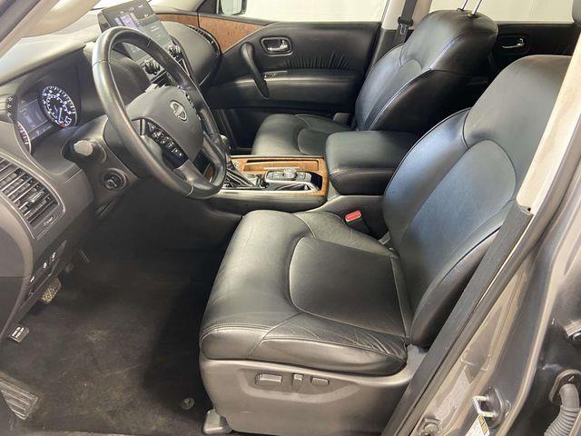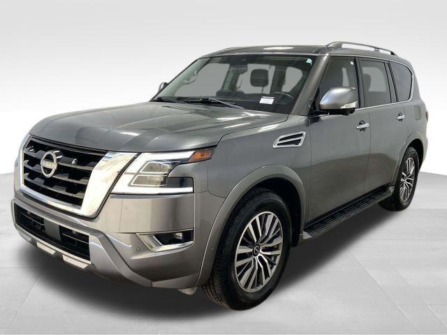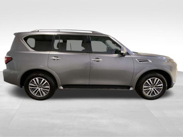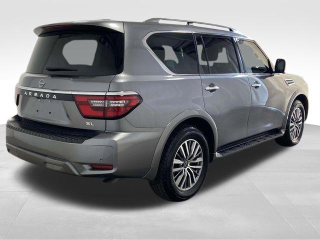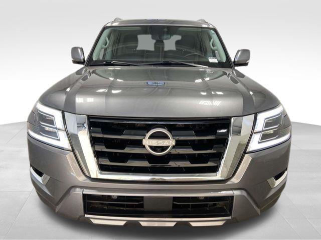 13 Speakers, 2.94 Axle Ratio, 3rd Row Carpeted Floor Mats - Bench Seat, 3rd row seats: split-bench, 4-Wheel Disc Brakes, 6-Speaker Audio System, ABS brakes, Air Conditioning, Alloy wheels, AM/FM radio: SiriusXM, Anti-whiplash front head restraints, Auto High-beam Headlights, Auto tilt-away steering wheel, Auto-dimming door mirrors, Auto-dimming Rear-View mirror, Auto-leveling suspension, Automatic temperature control, Bose 13-Speaker Premium Audio System, Brake assist, Bumpers: body-color, Delay-off headlights, Driver door bin, Driver vanity mirror, Dual front impact airbags, Dual front side impact airbags, Electronic Stability Control, Emergency communication system: NissanConnect Services, Exterior Parking Camera Rear, Four wheel independent suspension, Front anti-roll bar, Front Bucket Seats, Front Center Armrest, Front dual zone A/C, Front fog lights, Front reading lights, Fully automatic headlights, Garage door transmitter: HomeLink, Heated door mirrors, Heated Front Bucket Seats, Heated front seats, Heated steering wheel, Illuminated entry, Knee airbag, Leather Shift Knob, Leather-Appointed Seat Trim, Low tire pressure warning, Memory seat, Navigation System, NissanConnect featuring Apple CarPlay and Android Auto, Occupant sensing airbag, Outside temperature display, Overhead airbag, Overhead console, Panic alarm, Passenger door bin, Passenger vanity mirror, Power door mirrors, Power driver seat, Power Liftgate, Power moonroof, Power passenger seat, Power steering, Power windows, Premium audio system: Bose, Radio: NissanConnect w/SiriusXM, Rear air conditioning, Rear anti-roll bar, Rear reading lights, Rear seat center armrest, Rear window defroster, Rear window wiper, Reclining 3rd row seat, Remote keyless entry, Security system, Speed control, Speed-sensing steering, Speed-Sensitive Wipers, Split folding rear seat, Spoiler, Steering wheel memory, Steering wheel mounted audio controls, Tachometer, Telescoping steering wheel, Tilt steering wheel, Traction control, Trip computer, Turn signal indicator mirrors, Variably intermittent wipers, Voltmeter, Wheels: 20" x 8J Painted Alloy. Gun Metallic 2023 Nissan Armada SL 7-Speed Automatic 5.6L V8 DOHC 32V LEV3-ULEV125 400hp RWD