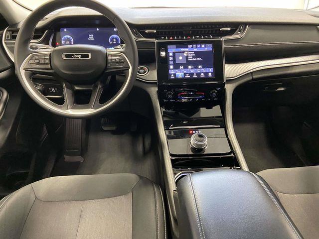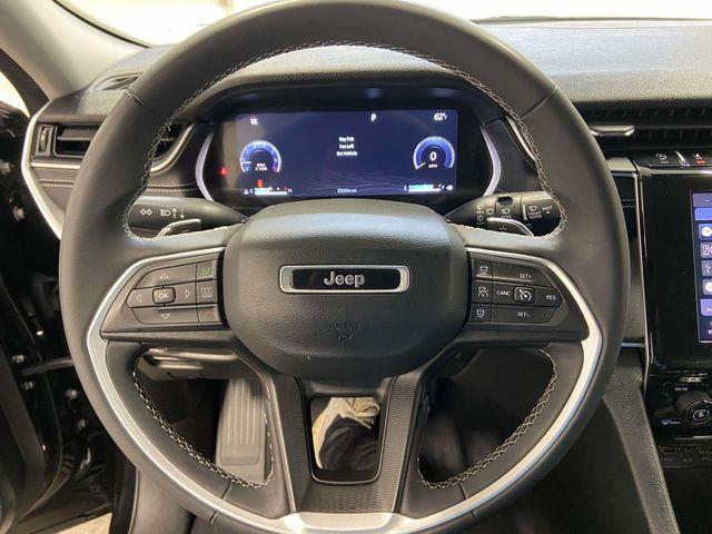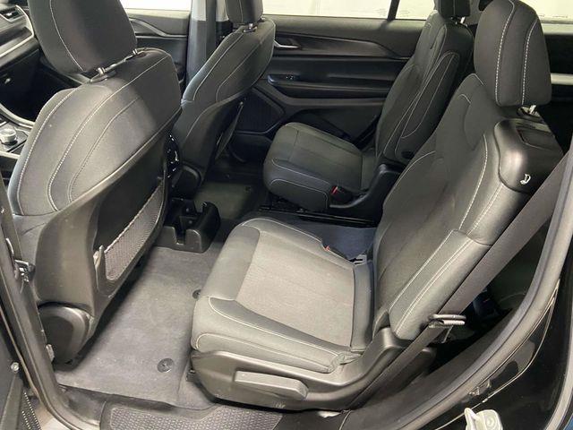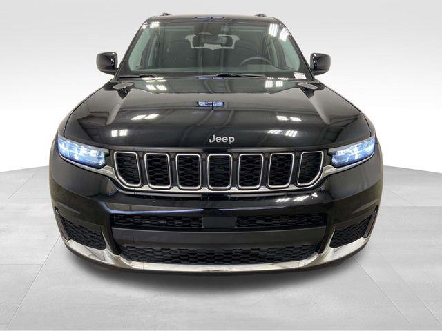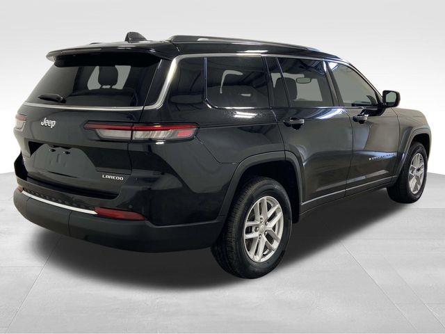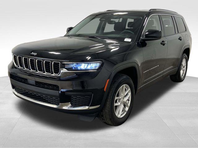 3.45 Rear Axle Ratio, 3rd row seats: split-bench, 4-Wheel Disc Brakes, 6 Speakers, ABS brakes, Air Conditioning, Alloy wheels, Anti-whiplash front head restraints, Automatic temperature control, Brake assist, Bumpers: body-color, Cloth Seats, Compass, Delay-off headlights, Driver door bin, Driver vanity mirror, Dual front impact airbags, Dual front side impact airbags, Electronic Stability Control, Emergency communication system, Four wheel independent suspension, Front anti-roll bar, Front Bucket Seats, Front Center Armrest w/Storage, Front dual zone A/C, Front License Plate Bracket, Front reading lights, Fully automatic headlights, Heated door mirrors, Illuminated entry, Knee airbag, Low tire pressure warning, Manual Fold Seatbacks, Molded In Color Black/Gloss Black Roof Rails, Normal Duty Suspension, Occupant sensing airbag, Outside temperature display, Overhead airbag, Overhead console, Panic alarm, ParkView Rear Back-Up Camera, Passenger door bin, Passenger vanity mirror, Power door mirrors, Power driver seat, Power steering, Power windows, Quick Order Package 23A Laredo, Radio data system, Radio: Uconnect 5 w/8.4" Display, Rear air conditioning, Rear anti-roll bar, Rear reading lights, Rear window defroster, Rear window wiper, Reclining 3rd row seat, Remote keyless entry, Security system, Speed control, Speed-Sensitive Wipers, Split folding rear seat, Spoiler, Steering wheel mounted audio controls, Tachometer, Telescoping steering wheel, Tilt steering wheel, Traction control, Trip computer, Variably intermittent wipers, Voltmeter, Wheels: 18" x 8.0" Fully Painted Aluminum. Diamond Black Crystal Pearlcoat 2023 Jeep Grand Cherokee L Laredo 8-Speed Automatic 3.6L V6 24V VVT RWD
