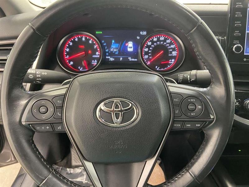 Ash Leather, 4-Wheel Disc Brakes, 6 Speakers, ABS brakes, Air Conditioning, Alloy wheels, AM/FM radio: SiriusXM, Apple CarPlay/Android Auto, Auto High-beam Headlights, Auto-dimming Rear-View mirror, Automatic temperature control, Brake assist, Bumpers: body-color, Delay-off headlights, Driver door bin, Driver vanity mirror, Dual front impact airbags, Dual front side impact airbags, Electronic Stability Control, Emergency communication system: Safety Connect (1-year trial), Exterior Parking Camera Rear, Four wheel independent suspension, Front anti-roll bar, Front Bucket Seats, Front Center Armrest, Front dual zone A/C, Front reading lights, Fully automatic headlights, Garage door transmitter: HomeLink, Heated door mirrors, Heated front seats, Illuminated entry, Knee airbag, Leather steering wheel, Low tire pressure warning, Multi-Stage Heated Front Bucket Seats, Occupant sensing airbag, Outside temperature display, Overhead airbag, Overhead console, Panic alarm, Passenger door bin, Passenger vanity mirror, Perforated Leather Seat Trim, Power door mirrors, Power driver seat, Power passenger seat, Power steering, Power windows, Radio data system, Radio: Audio Plus, Rear anti-roll bar, Rear reading lights, Rear seat center armrest, Rear side impact airbag, Rear window defroster, Remote keyless entry, Security system, Speed control, Speed-sensing steering, Split folding rear seat, Spoiler, Steering wheel mounted audio controls, Tachometer, Telescoping steering wheel, Tilt steering wheel, Traction control, Trip computer, Turn signal indicator mirrors, Variably intermittent wipers, Wheels: 19" x 8J Alloy, Ash Leather. Celestial Silver Metallic 2024 Toyota Camry XSE 8-Speed Automatic 2.5L I4 DOHC 16V FWD
