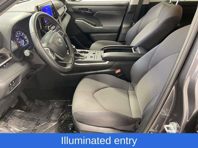 Highlander LE, AWD, Magnetic Gray Metallic, Graphite w/Fabric Seat Trim, ABS brakes, Active Cruise Control, Alloy wheels, Electronic Stability Control, Front dual zone A/C, Heated door mirrors, Illuminated entry, Low tire pressure warning, Power Liftgate, Remote keyless entry, Traction control. Magnetic Gray Metallic 2024 Toyota Highlander LE AWD 8-Speed Automatic 2.4L I4 PDI Turbocharged DOHC 16V LEV3-SULEV30 265hp