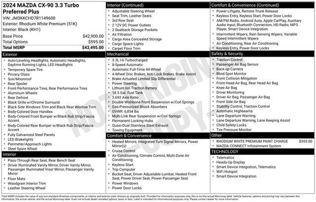 Every new Mazda CX-90 from Hallmark Subaru Birmingham comes with: