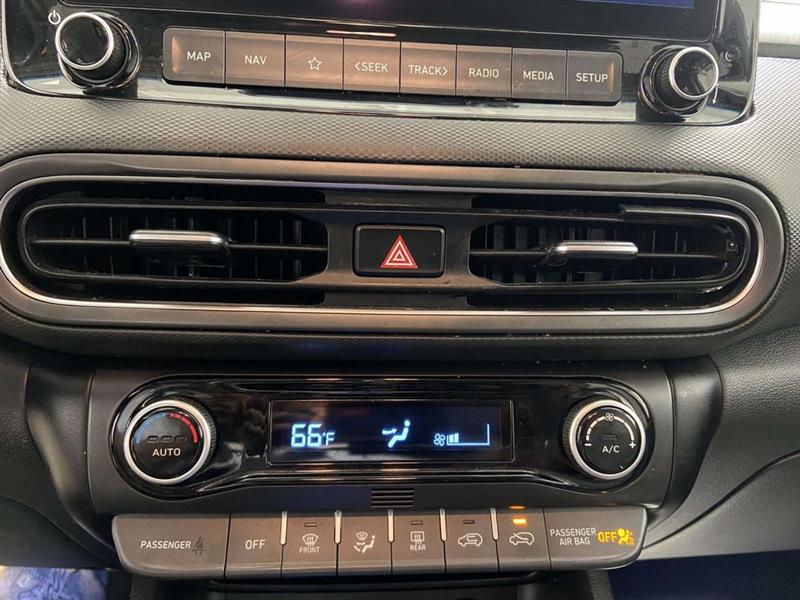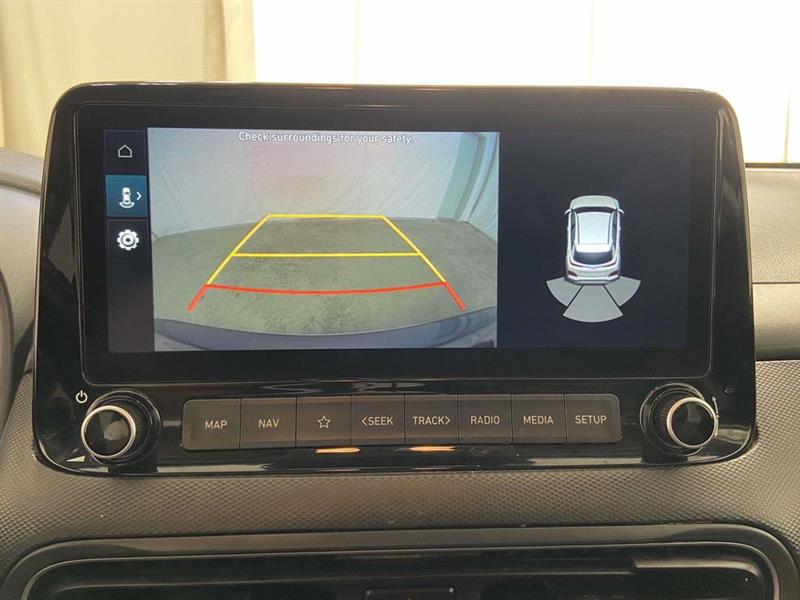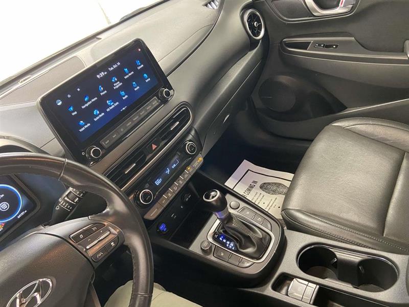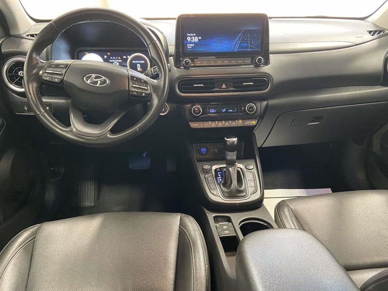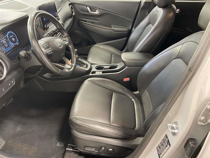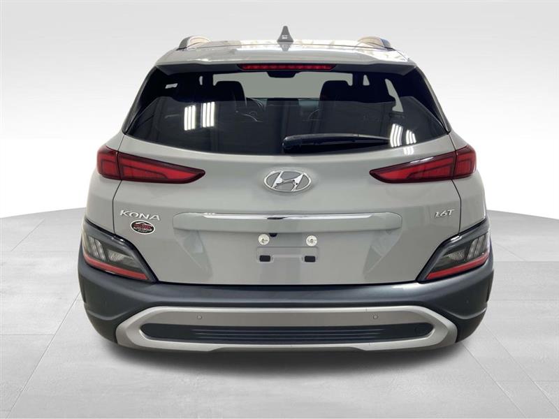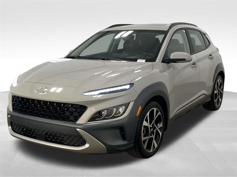 3.174 Axle Ratio, 4-Wheel Disc Brakes, 8 Speakers, ABS brakes, Air Conditioning, Alloy wheels, AM/FM radio: SiriusXM, Apple CarPlay & Android Auto, Auto High-beam Headlights, Auto-dimming Rear-View mirror, Automatic temperature control, Brake assist, Bumpers: body-color, Cargo Net, Cargo Tray, Carpeted Floor Mats, Delay-off headlights, Driver door bin, Driver vanity mirror, Dual front impact airbags, Dual front side impact airbags, Electronic Stability Control, Emergency communication system: Blue Link Connected Car Service (3-year complimentary subscription), Exterior Parking Camera Rear, First Aid Kit, Front & Rear Mudguards, Front anti-roll bar, Front Bucket Seats, Front Center Armrest, Front reading lights, Front wheel independent suspension, Fully automatic headlights, Garage door transmitter: HomeLink, harman/kardon® Speakers, Heated door mirrors, Heated Front Bucket Seats, Heated front seats, Illuminated entry, Leather Seat Trim, Leather Shift Knob, Leather steering wheel, Low tire pressure warning, Navigation System, Occupant sensing airbag, Option Group 01, Overhead airbag, Overhead console, Panic alarm, Passenger door bin, Passenger vanity mirror, Power door mirrors, Power driver seat, Power moonroof, Power steering, Power windows, Radio: Harman Kardon Premium Audio System, Rain sensing wipers, Rear Bumper Applique, Rear seat center armrest, Rear window defroster, Rear window wiper, Remote keyless entry, Security system, Speed control, Speed-sensing steering, Split folding rear seat, Spoiler, Steering wheel mounted audio controls, Tachometer, Telescoping steering wheel, Tilt steering wheel, Traction control, Trip computer, Turn signal indicator mirrors, Variably intermittent wipers, Wheels: 18 x 7.5J Alloy. Cyber Silver 2022 Hyundai Kona Limited 7-Speed Automatic 1.6L I4 DGI Turbocharged DOHC 16V LEV3-ULEV70 195hp FWD