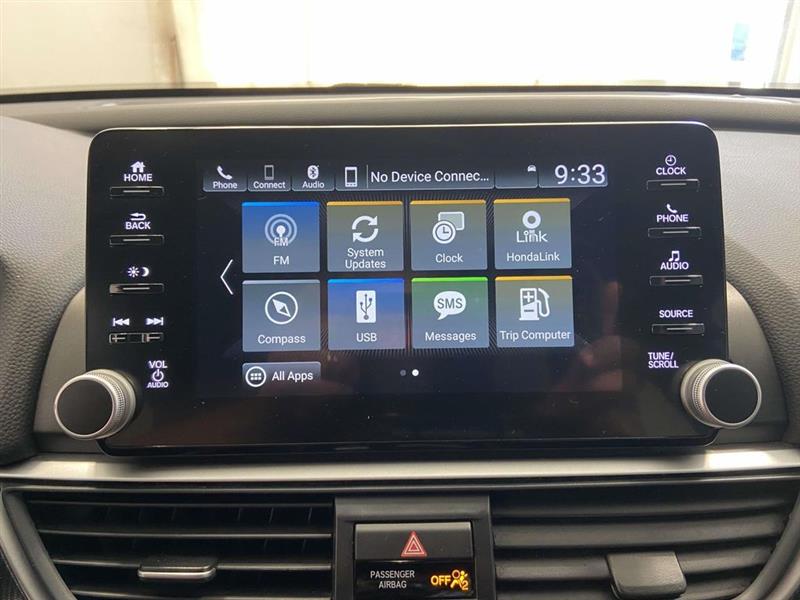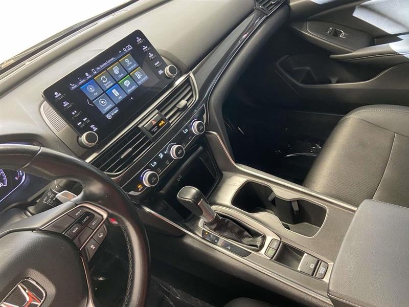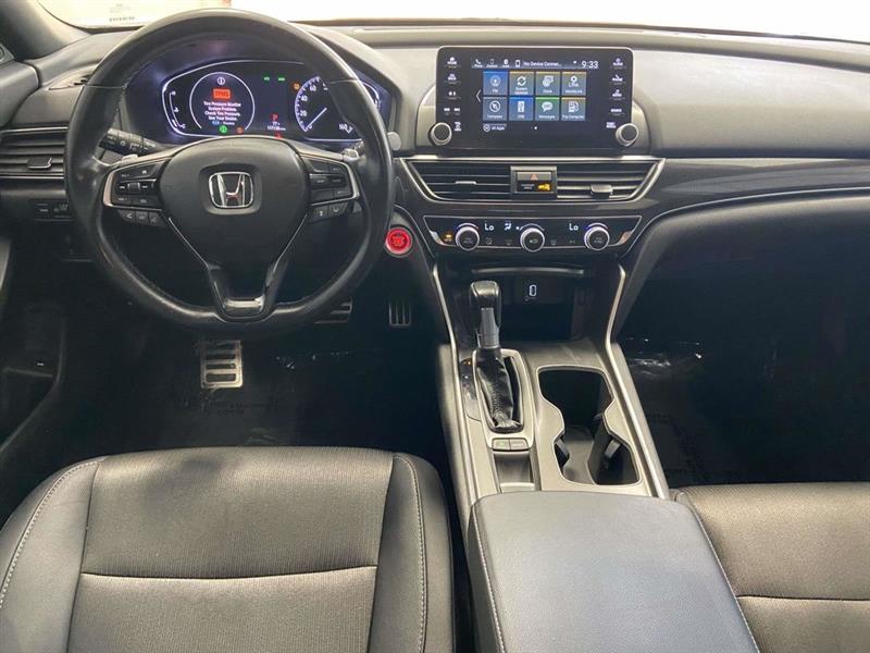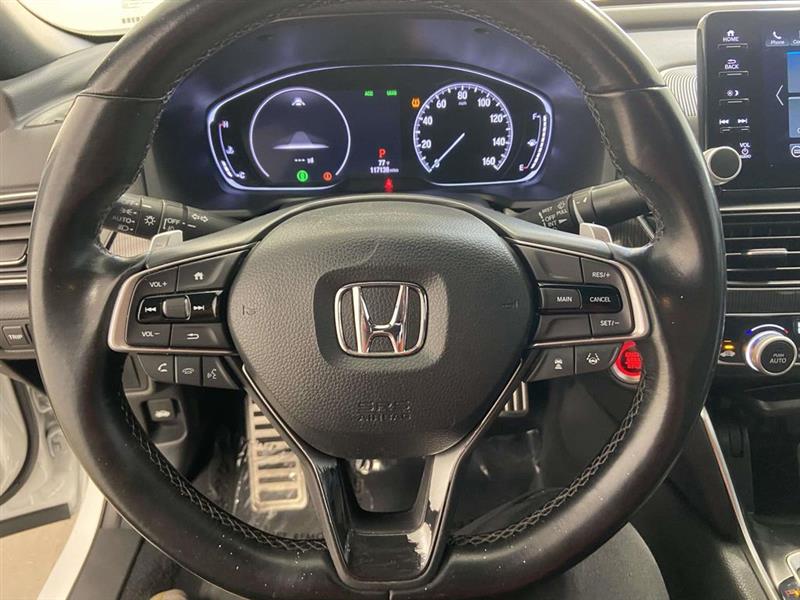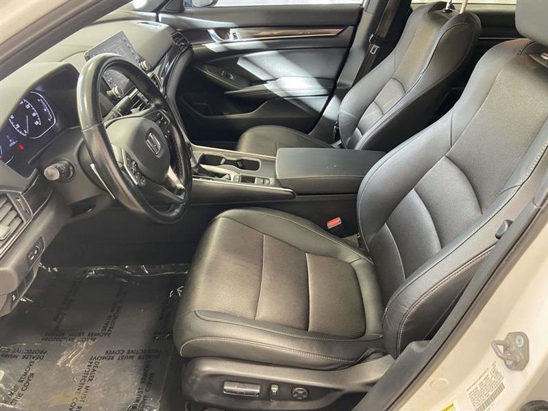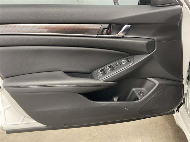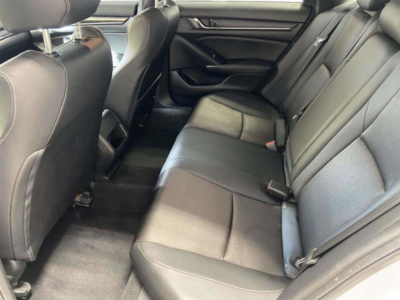 Black w/Leather-Trimmed Seats, 4-Wheel Disc Brakes, 8 Speakers, ABS brakes, Adaptive Cruise Control: Adaptive Cruise Control (ACC) with Low-Speed Follow, Air Conditioning, Alloy wheels, AM/FM radio, Apple CarPlay/Android Auto, Auto High-beam Headlights, Automatic temperature control, Brake assist, Bumpers: body-color, Cloth Seat Trim, Delay-off headlights, Driver door bin, Driver vanity mirror, Dual front impact airbags, Dual front side impact airbags, Electronic Stability Control, Emergency communication system: HondaLink, Exterior Parking Camera Rear, Forward collision: Collision Mitigation Braking System (CMBS) + FCW mitigation, Four wheel independent suspension, Front anti-roll bar, Front Bucket Seats, Front Center Armrest, Front dual zone A/C, Front fog lights, Front reading lights, Fully automatic headlights, Illuminated entry, Knee airbag, Lane Departure Warning System, Leather Shift Knob, Leather steering wheel, Low tire pressure warning, Occupant sensing airbag, Outside temperature display, Overhead airbag, Overhead console, Panic alarm, Passenger door bin, Passenger vanity mirror, Power door mirrors, Power driver seat, Power steering, Power windows, Radio data system, Radio: 180-Watt AM/FM Audio System, Rear anti-roll bar, Rear seat center armrest, Rear window defroster, Remote keyless entry, Security system, Speed control, Speed-sensing steering, Speed-Sensitive Wipers, Split folding rear seat, Spoiler, Steering wheel mounted audio controls, Tachometer, Telescoping steering wheel, Tilt steering wheel, Traction control, Trip computer, Variably intermittent wipers, Wheels: 19" Machine-Finished Alloy w/Black Inserts, Black w/Leather-Trimmed Seats. Platinum White Pearl 2020 Honda Accord Sport CVT 1.5T I4 DOHC 16V Turbocharged VTEC FWD