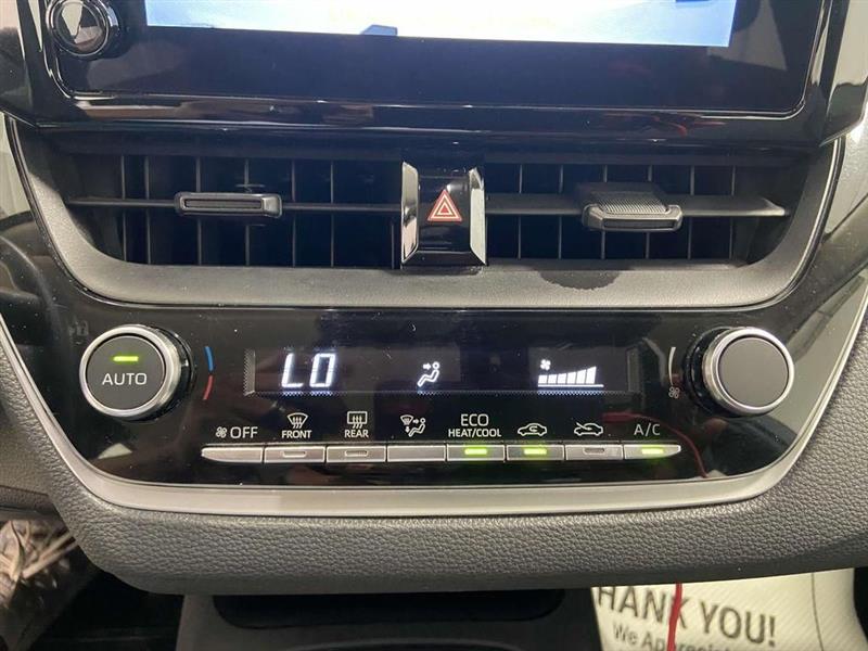 4-Wheel Disc Brakes, 6 Speakers, ABS brakes, Air Conditioning, AM/FM radio: SiriusXM, Auto High-beam Headlights, Automatic temperature control, Brake assist, Bumpers: body-color, Delay-off headlights, Driver door bin, Driver vanity mirror, Dual front impact airbags, Dual front side impact airbags, Electronic Stability Control, Emergency communication system: Safety Connect (up to 10-year trial subscription), Exterior Parking Camera Rear, Front anti-roll bar, Front Bucket Seats, Front Center Armrest, Front reading lights, Front wheel independent suspension, Fully automatic headlights, Illuminated entry, Knee airbag, Low tire pressure warning, Occupant sensing airbag, Outside temperature display, Overhead airbag, Panic alarm, Passenger door bin, Passenger vanity mirror, Power door mirrors, Power steering, Power windows, Premium Fabric Seat Trim, Radio data system, Radio: 8" Toyota Audio Multimedia, Rear anti-roll bar, Rear seat center armrest, Rear side impact airbag, Rear window defroster, Remote keyless entry, Speed control, Split folding rear seat, Steering wheel mounted audio controls, Tachometer, Telescoping steering wheel, Tilt steering wheel, Traction control, Trip computer, Variably intermittent wipers, Wheels: 16" Wide Vent Steel. 2023 Toyota Corolla LE CVT 2.0L I4 DOHC 16V FWD