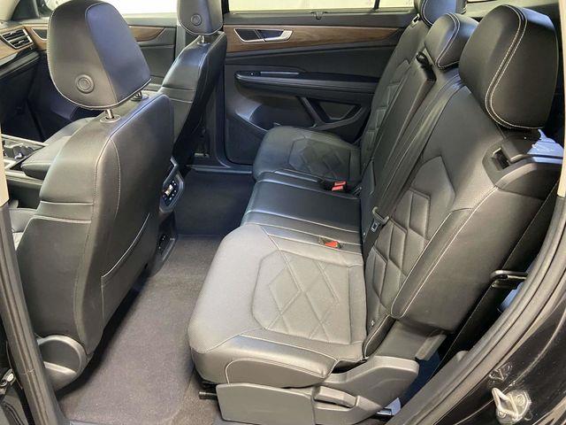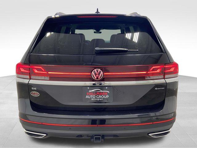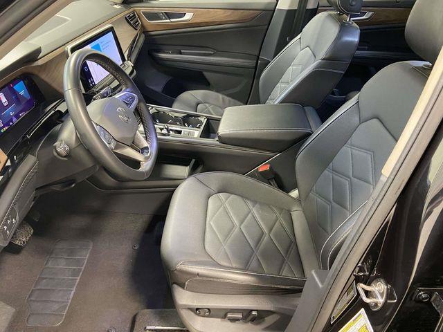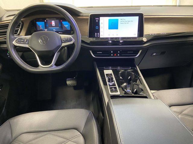 Atlas 2.0T SE w/Technology, 4D Sport Utility, 8-Speed Automatic with Tiptronic, AWD, 3.60 Axle Ratio, 3rd row seats: split-bench, 4-Wheel Disc Brakes, 6 Speakers, ABS brakes, Air Conditioning, Alloy wheels, AM/FM radio: SiriusXM with 360L, Auto-dimming Rear-View mirror, Automatic temperature control, Brake assist, Bumpers: body-color, Compass, Delay-off headlights, Driver door bin, Driver vanity mirror, Dual front impact airbags, Dual front side impact airbags, Electronic Stability Control, Emergency communication system: VW Car-Net Safe & Secure 5-year, Exterior Parking Camera Rear, Four wheel independent suspension, Front anti-roll bar, Front Bucket Seats, Front Center Armrest, Front dual zone A/C, Front fog lights, Front reading lights, Fully automatic headlights, Heated door mirrors, Heated front seats, Heated steering wheel, Heated/Actively Ventilated Front Bucket Seats, Illuminated entry, Low tire pressure warning, Occupant sensing airbag, Outside temperature display, Overhead airbag, Overhead console, Panic alarm, Passenger door bin, Passenger vanity mirror, Perforated V-Tex Leatherette Seating Surfaces, Power door mirrors, Power driver seat, Power Liftgate, Power steering, Power windows, Radio data system, Radio: MIB3 Composition Media, Rain sensing wipers, Rear air conditioning, Rear anti-roll bar, Rear reading lights, Rear seat center armrest, Rear window defroster, Rear window wiper, Remote keyless entry, Security system, Speed control, Speed-sensing steering, Split folding rear seat, Spoiler, Standard Suspension, Steering wheel mounted audio controls, Tachometer, Telescoping steering wheel, Tilt steering wheel, Traction control, Trip computer, Turn signal indicator mirrors, Variably intermittent wipers, Ventilated front seats, Wheels: 20" 2-Tone Machined Alloy, Atlas 2.0T SE w/Technology, 4D Sport Utility, 8-Speed Automatic with Tiptronic, AWD. Deep Black Pearl 2024 Volkswagen Atlas 2.0T SE w/Technology AWD 8-Speed Automatic with Tiptronic 2.0L TSI