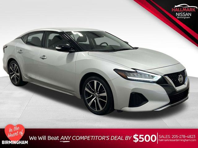 18" Machined Alloy Wheels, 4-Wheel Disc Brakes, 8 Speakers, ABS brakes, Air Conditioning, Alloy wheels, AM/FM radio: SiriusXM, AM/FM/CD Audio System, Auto High-beam Headlights, Auto-dimming Rear-View mirror, Automatic temperature control, Bag Hooks, Blind Spot Warning, Brake assist, Bumpers: body-color, CD player, Compass, Delay-off headlights, Driver door bin, Driver vanity mirror, Dual front impact airbags, Dual front side impact airbags, Electronic Stability Control, Emergency communication system: NissanConnect Services, First Aid Kit, Floor Mats, Four wheel independent suspension, Front anti-roll bar, Front Bucket Seats, Front Center Armrest, Front dual zone A/C, Front reading lights, Front Zero Gravity Heated Seats, Fully automatic headlights, Heated door mirrors, Heated front seats, Illuminated entry, Knee airbag, Leather-Appointed Seat Trim, Low tire pressure warning, Navigation System, NissanConnect featuring Apple CarPlay and Android Auto, Occupant sensing airbag, Outside temperature display, Overhead airbag, Overhead console, Panic alarm, Passenger door bin, Passenger vanity mirror, Power door mirrors, Power driver seat, Power passenger seat, Power steering, Power windows, Radio data system, Rear anti-roll bar, Rear Parking Sensors, Rear reading lights, Rear seat center armrest, Rear side impact airbag, Rear window defroster, Remote keyless entry, Security system, Speed control, Speed-sensing steering, Speed-Sensitive Wipers, Split folding rear seat, Sport steering wheel, Steering wheel mounted audio controls, Tachometer, Telescoping steering wheel, Tilt steering wheel, Traction control, Trip computer, Trunk Mat, Trunk Net, Turn signal indicator mirrors, Variably intermittent wipers. Brilliant Silver Metallic 2021 Nissan Maxima SV FWD CVT with Xtronic 3.5L V6 DOHC 24V