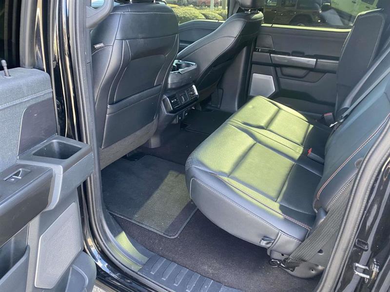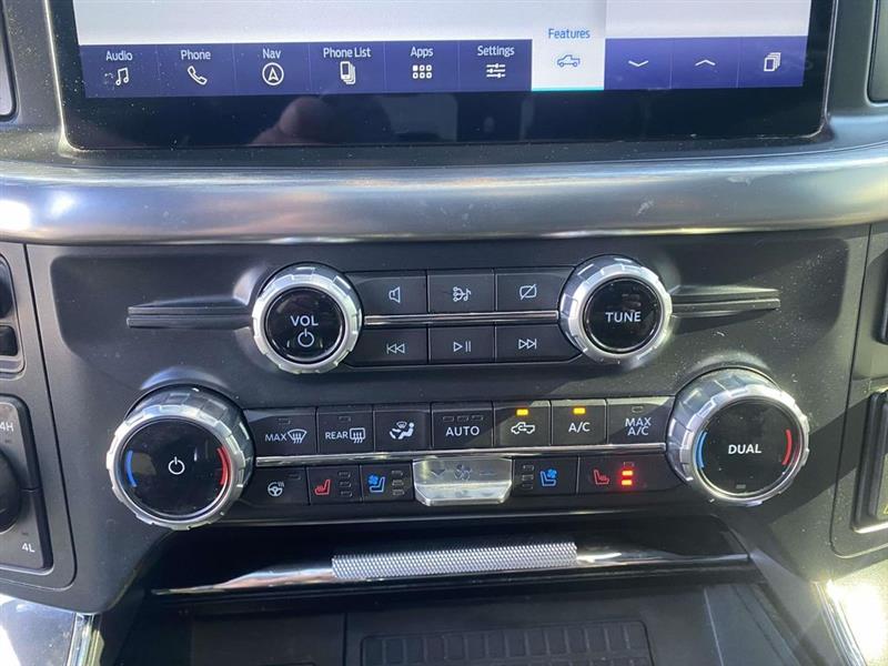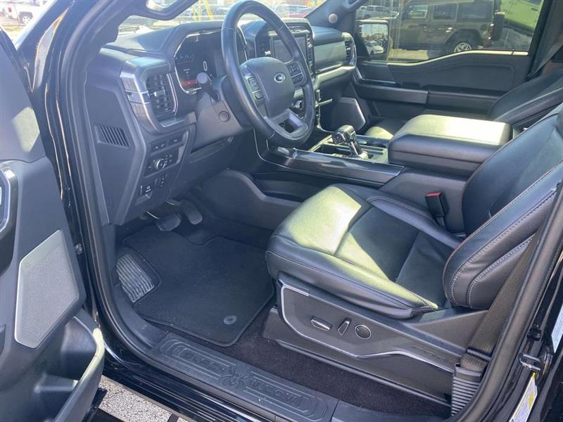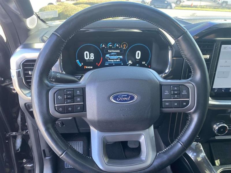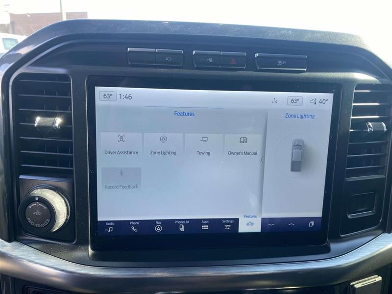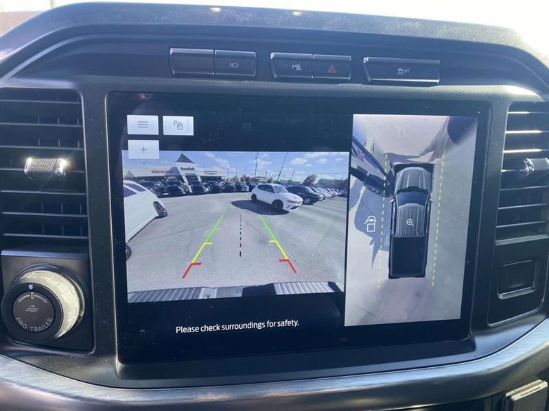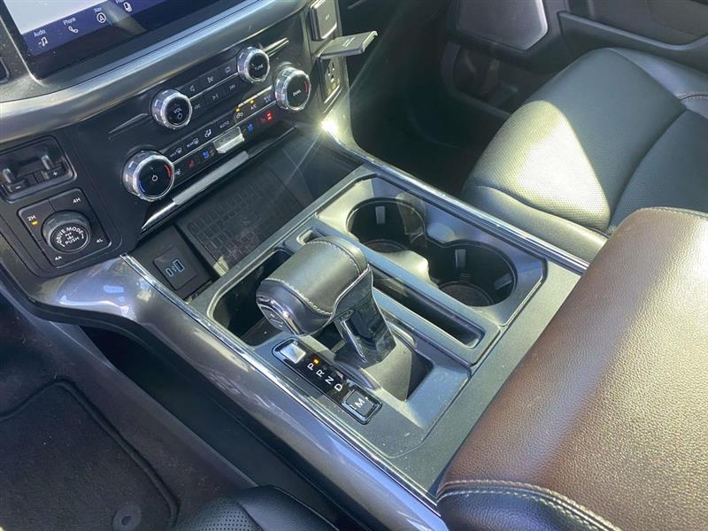 4WD, 18" Machined-Aluminum Wheels, 2nd Row Heated Seats, 360 Degree Camera, 4-Wheel Disc Brakes, 7 Speakers, ABS brakes, Adjustable pedals, Air Conditioning, Alloy wheels, AM/FM radio: SiriusXM with 360L, Auto High-beam Headlights, Auto Start-Stop Removal, Auto-dimming door mirrors, Auto-dimming Rear-View mirror, Automatic temperature control, Brake assist, Bumpers: chrome, Class IV Trailer Hitch Receiver, Compass, Connected Built-In Navigation, Delay-off headlights, Driver door bin, Driver vanity mirror, Dual front impact airbags, Dual front side impact airbags, Electronic Locking w/3.73 Axle Ratio, Electronic Stability Control, Emergency communication system: SYNC 4 911 Assist, Equipment Group 502A High, Extended Range 36 Gallon Fuel Tank, Exterior Parking Camera Rear, Ford Co-Pilot360 Assist 2.0 (DISC), Front anti-roll bar, Front Center Armrest w/Storage, Front dual zone A/C, Front fog lights, Front reading lights, Front wheel independent suspension, Fully automatic headlights, Heated door mirrors, Heated front seats, Illuminated entry, Integrated Trailer Brake Controller, Intelligent Adaptive Cruise Control w/Stop & Go, Lariat Sport Appearance Package, Leather-Trimmed 40/20/40 Front Seat, Leather-Trimmed Bucket Seats, LED Projector w/Dynamic Bending Headlamps, LED Sideview Mirror Spotlights, Low tire pressure warning, Memory seat, Occupant sensing airbag, Onboard 400W Outlet, Outside temperature display, Overhead airbag, Overhead console, Panic alarm, Passenger door bin, Passenger vanity mirror, Pedal memory, Power door mirrors, Power driver seat, Power Glass Sideview Mirr w/Chrome Skull Caps, Power passenger seat, Power steering, Power Tilt/Telescoping Steering Column w/Memory, Power windows, Radio data system, Radio: AM/FM SiriusXM w/360L, Radio: B&O Unleashed Sound System by Bang & Olufsen, Rear reading lights, Rear seat center armrest, Rear step bumper, Rear window defroster, Remote keyless entry, Security system, Speed control, Speed-sensing steering, Split folding rear seat, Steering wheel mounted audio controls, SYNC 4 w/Enhanced Voice Recognition, Tachometer, Telescoping steering wheel, Tilt steering wheel, Traction control, Trailer Tow Package, Trip computer, Turn signal indicator mirrors, Twin Panel Moonroof, Variably intermittent wipers, Ventilated front seats, Voltmeter, Wheel Well Liner, Wheels: 18" 6-Spoke Machined Aluminum, Wireless Charging Pad, 4WD. Agate Black Metallic 2022 Ford F-150 Lariat 10-Speed Automatic 5.0L V8 4WD