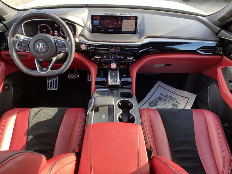 Leather, 16 Speakers, 3rd row seats: split-bench, 4-Wheel Disc Brakes, 4.17 Axle Ratio, A/V remote: CabinControl, ABS brakes, Air Conditioning, Alloy wheels, AM/FM radio: SiriusXM, Anti-whiplash front head restraints, Apple CarPlay/Android Auto, Audio memory, Auto High-beam Headlights, Auto tilt-away steering wheel, Auto-dimming Rear-View mirror, Automatic temperature control, Brake assist, Bumpers: body-color, Compass, Delay-off headlights, Driver door bin, Driver vanity mirror, Dual front impact airbags, Dual front side impact airbags, Electronic Stability Control, Emergency communication system: AcuraLink, Exterior Parking Camera Rear, Four wheel independent suspension, Front anti-roll bar, Front Bucket Seats, Front Center Armrest, Front dual zone A/C, Front fog lights, Front reading lights, Fully automatic headlights, Garage door transmitter: HomeLink, Heated & Ventilated Front Sport Seats, Heated door mirrors, Heated front seats, HVAC memory, Illuminated entry, Knee airbag, Lane departure: Lane Keeping Assist System (LKAS) active, Leather steering wheel, Low tire pressure warning, Memory seat, Navigation system: Acura Navigation System with 3D View, Occupant sensing airbag, Outside temperature display, Overhead airbag, Overhead console, Panic alarm, Passenger door bin, Passenger vanity mirror, Perforated Premium Milano Leather Trimmed Seats, Power door mirrors, Power driver seat, Power Liftgate, Power moonroof, Power passenger seat, Power steering, Power windows, Premium audio system: Acura/ELS Studio 3D, Radio data system, Radio: ELS Studio 3D Premium Audio System, Rain sensing wipers, Rear air conditioning, Rear anti-roll bar, Rear reading lights, Rear seat center armrest, Rear window defroster, Rear window wiper, Remote keyless entry, Security system, Speed control, Speed-sensing steering, Speed-Sensitive Wipers, Split folding rear seat, Spoiler, Sport steering wheel, Steering wheel memory, Steering wheel mounted audio controls, Tachometer, Telescoping steering wheel, Tilt steering wheel, Traction control, Trip computer, Turn signal indicator mirrors, Variably intermittent wipers, Ventilated front seats, Wheels: 20" x 9" Aluminum Alloy, Leather. 2023 Acura MDX A-Spec SH-AWD 10-Speed Automatic 3.5L V6 SOHC i-VTEC 24V AWD