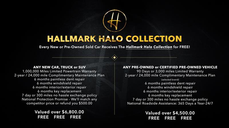 Hallmark Automotive Group is your trusted source for new vehicles, quality used cars, and certified auto service in Birmingham, Alabama. Every new Hallmark vehicle we sell comes with a 1,000,000-mile powertrain warranty and the Hallmark Halo Collection , giving you unmatched peace of mind. Choose from top brands like Chrysler, Dodge, Jeep, Ram, Hyundai, Nissan, Subaru and enjoy easy financing for all credit types. Whether you’re buying, trading, or servicing your vehicle, drivers from Hoover, Vestavia Hills, and beyond count on Hallmark for unbeatable value and service. All used vehicle pricing includes a $1,000 finance incentive and a $1,000 trade in discount.